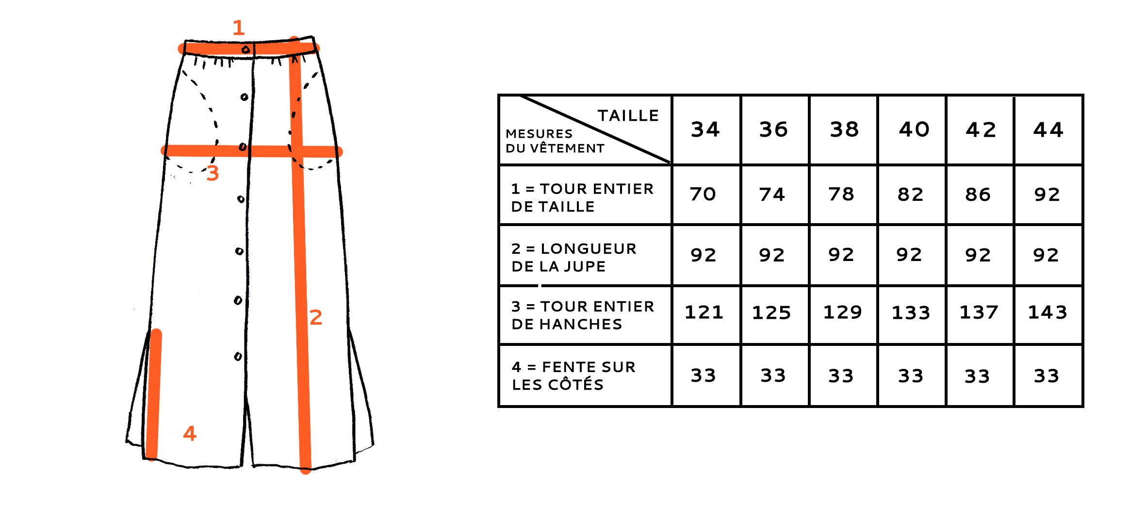 Comment comprendre le tableau de mesure de notre jupe longue motif animalier ?