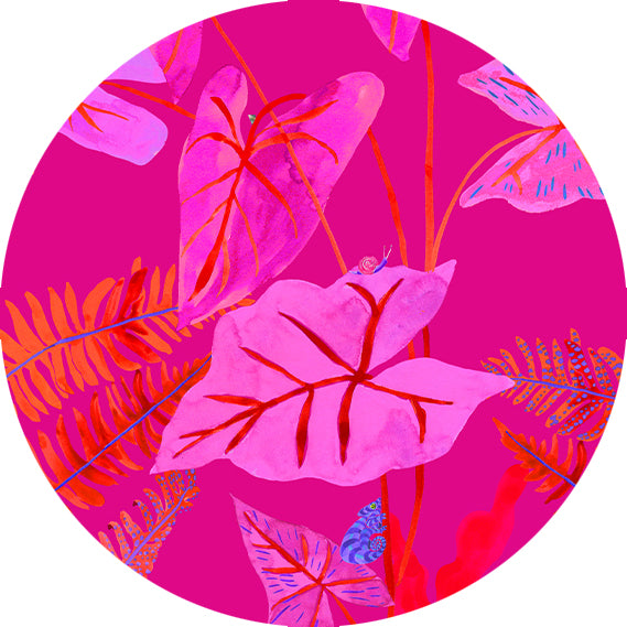 Voici mon motif qui donne bonne mine comme une journée de bronzage dans les années 70 : dansant comme une bossa nova, rose comme un coucher de soleil brésilien, mystérieux comme une jungle amazonienne où se tapissent reptiles, papillons, chenilles, escargots et fleurs mystérieuses.