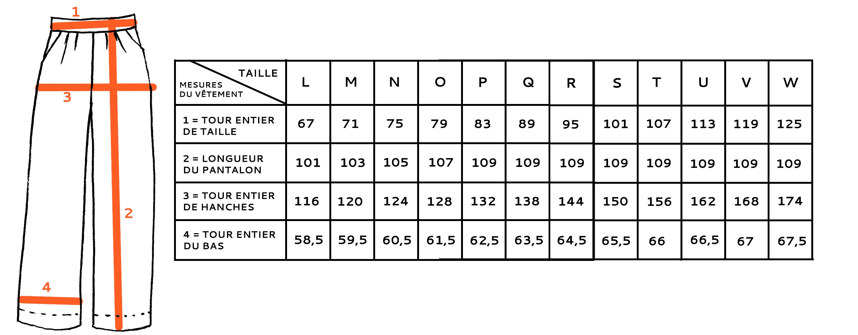 Comment comprendre le tableau de mesure du pantalon fluide "Riviera" ?