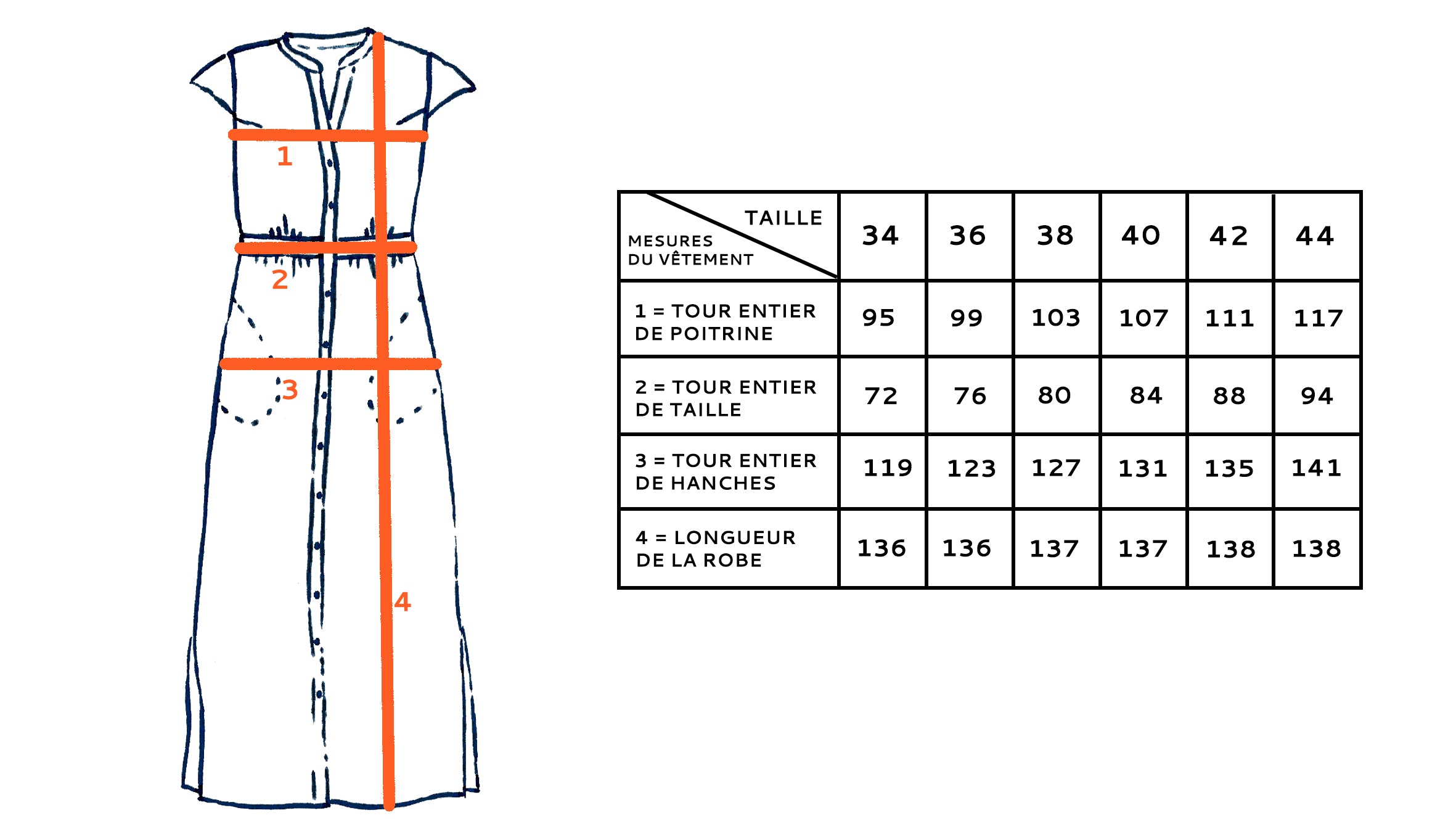 Les mesures indiquées sont celles de la robe longue motif animalier, en centimètres. Pour choisir votre taille, regardez surtout la poitrine. Mesurez votre propre tour de poitrine sans serrer ni trop relâcher. Puis choisissez votre taille en gardant en tête que vous devez avoir entre 2 et 6cm d'aisance :-) Donc si vous faites 95 de poitrine, il vous faudra un vêtement qui mesure entre 97 et 101 de tour de poitrine. ET les hanches passeront car nous les avons prévu larges :-)